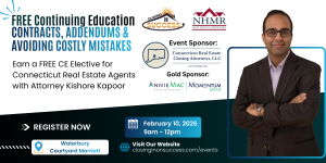 Join us on Tuesday, February 10, 2026, at the Waterbury Courtyard Marriott for an in-depth and practical look at Contracts and Addendums, presented by Attorney Kishore Kapoor of The Connecticut Real Estate Closing Attorneys, LLC.